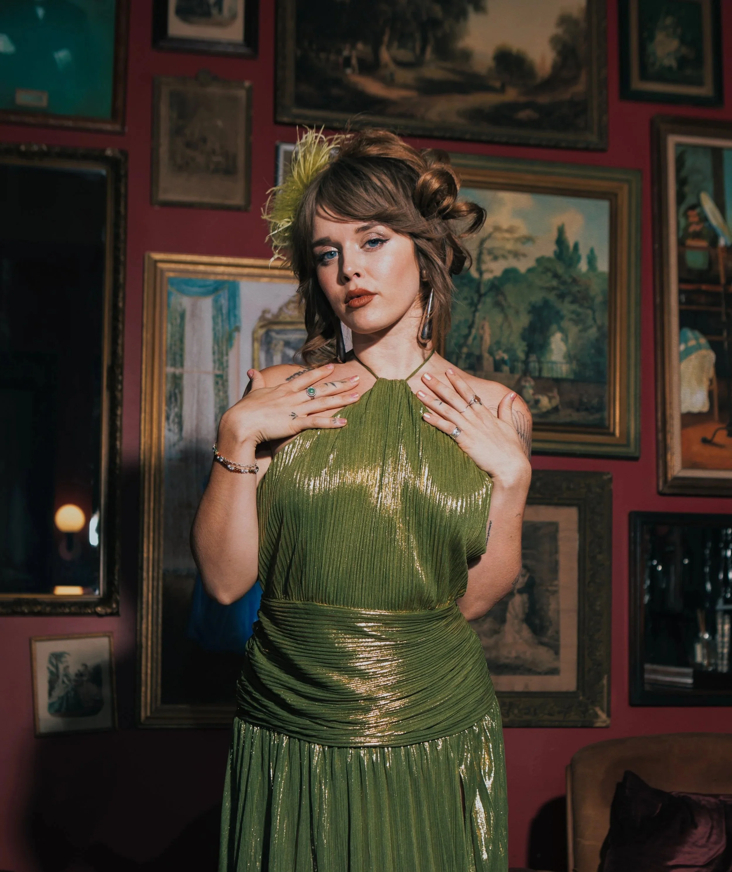 Cally Cole (she/her) is a Minnesota native now based in New Orleans and the lead singer of The Cosmos. With roots in folk and Americana, she spent 17 years playing classical flute and grew up scribbling songs in notebooks, singing alongside her sister, and listening to her father play his original music. In her early twenties she performed for four years in a Motown/soft rock cover band in Duluth, Minnesota called Laura Velvet & The Bookhouse Boys. Cally studied classical opera and flute in school but has always found her truest creative refuge in songwriting with just a guitar. A lover of rich harmonies and heart-sweeping melodies, she blends technical training with emotional storytelling.